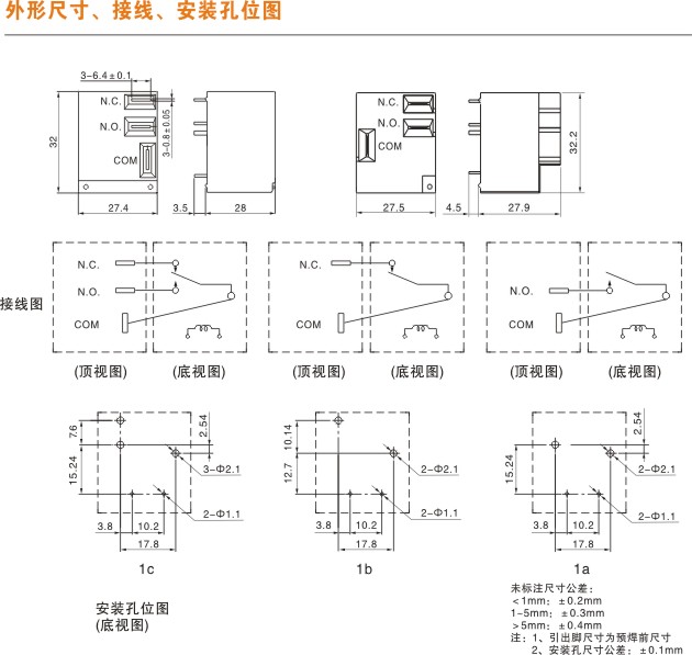 觸點形式繼電器常開或常閉(常見4、6只腳)、轉換(常見5只腳或8只腳)